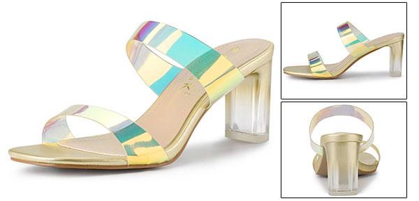 透明なサンダル チャンキーハイヒール スリップオン スライドサンダル オープントゥ つま先革:PVC; アウトソール:ゴム; ヒール:クリアPC ご注文前にサイズをご確認ください。