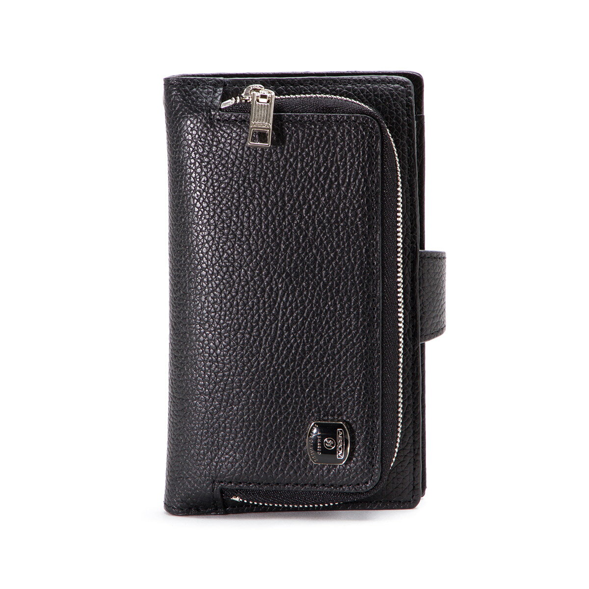 シュリンクレザーのような雰囲気をまとった、持ち歩きに便利なウォレット&スマホケースです。
