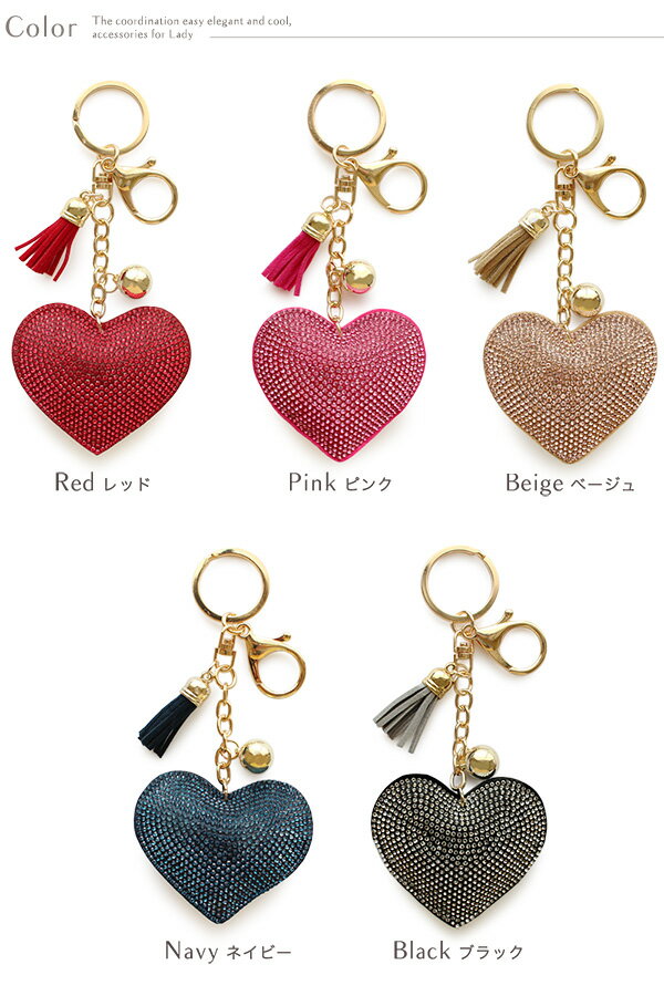 keyword :アクセサリー レディース キーチャーム バッグチャーム キーホルダー ハート ストーン タッセル ブラック ピンク レッド グレー■□ Item information - 商品説明 - □■ キラキラと煌めくラインストーンで彩られたハート型バッグチャームです。