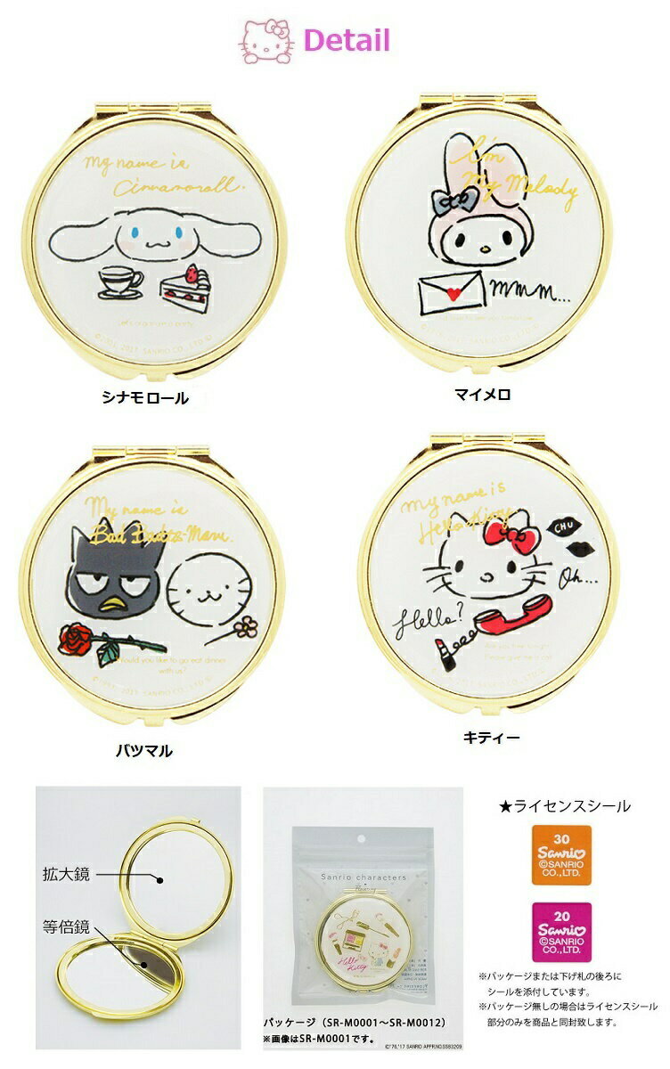 【ラッキーシール対応】【Sanrio サンリオ SANRIO コンパクトミラー スタンドミラ 手鏡 旅行用グッズ メイク道具 折りたたみミラー 鏡 キティー シナモロール】手書きミックスSANRIOコンパクトミラー