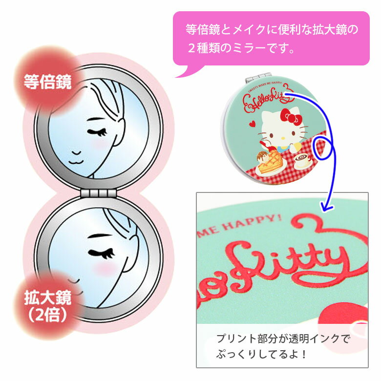 サンリオキャラクターのキュートな2面タイプのコンパクトミラーです。