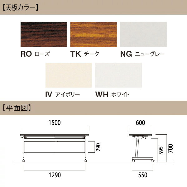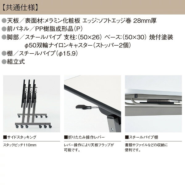 スタッキングテーブル (天板跳ね上げ式) キャスター付きE-LHA-1560P 幅1500x奥行600x高さ700mm 【送料無料(北海道 沖縄 離島を除く)】 会議用テーブル 折りたたみ 長机 会議室 研修 講義室 セミナー 塾 作業 フォールディングテーブル